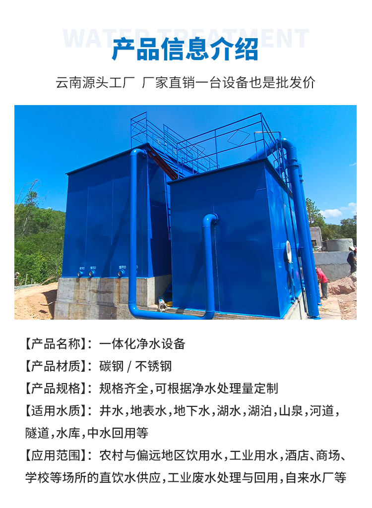 一体化净水设备厂家直供 0.1μm 精滤 + 智能运维,工业 / 商用净水首选方案 云南昆明源头水处理设备厂家