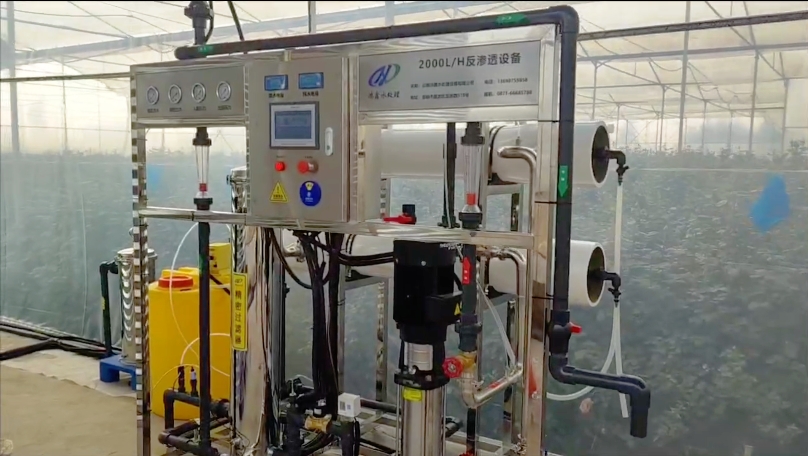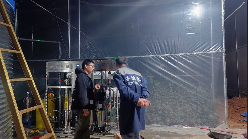 这是一套每小时产水量为2吨每小时的反渗透设备,客户用于玫瑰花种植净水,原水为水塘水,该设备安装于2025年4月初,以下是施工现场图片