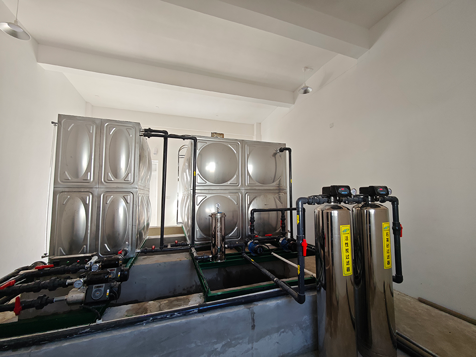 楚雄小松棵光伏生活区净水设备已于2025 年 11 月 26 日顺利完成安装,该设备为光伏生活区人员用水需求打造,可有效保障区域内人员的日常饮用水安全与用水品质,为光伏项目工作人员的生活提供坚实的水质保障。以下是现场图